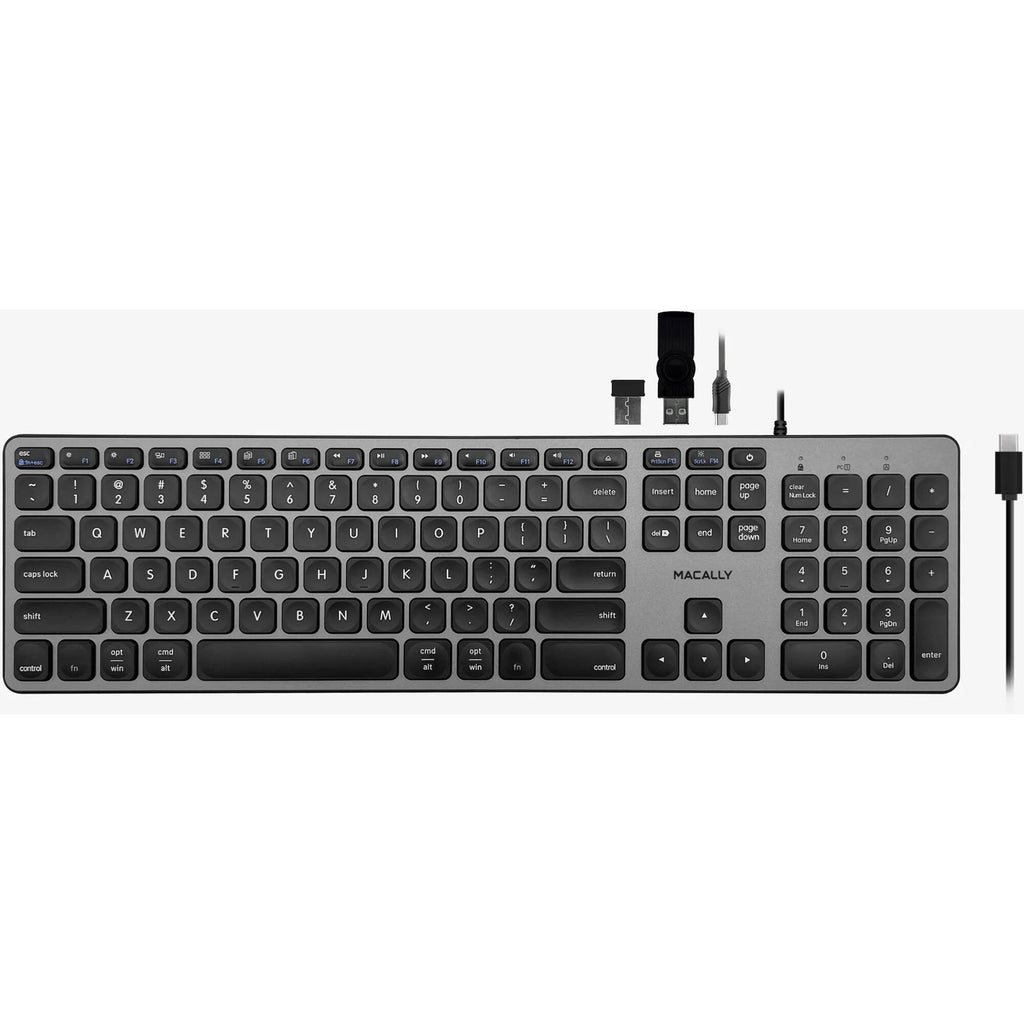 - Macally Full-Size USB-C Keyboard with Built-In 3-Port USB Hub for Mac