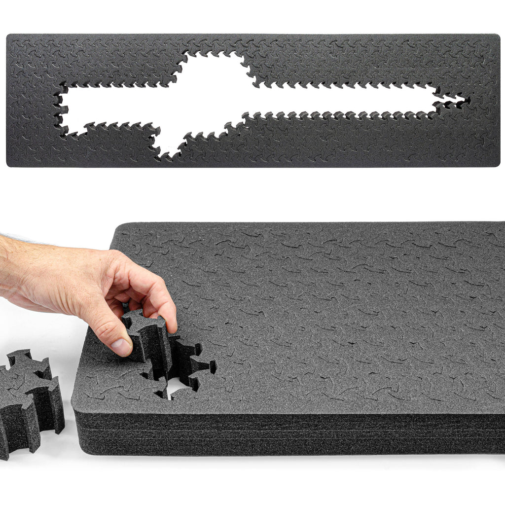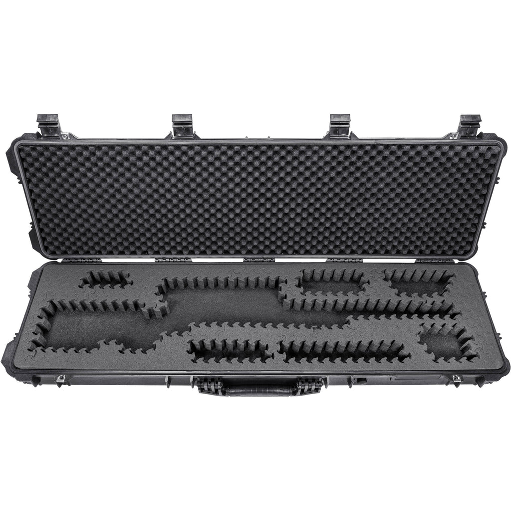 Carry your shooting gear in a hard case with custom-fitted foam thanks to the Hard Rifle Case with RAGAR Reconfigurable & Reusable XP Crosslinked Foam by RAGAR. This 53" hard case is rated IP67 water proof and seals away water when submerged up to one meter. configure your storage with the included layer of tessellating foam inserts that lock together in any orientation, creating customized storage for cameras, drones, lights, and more.