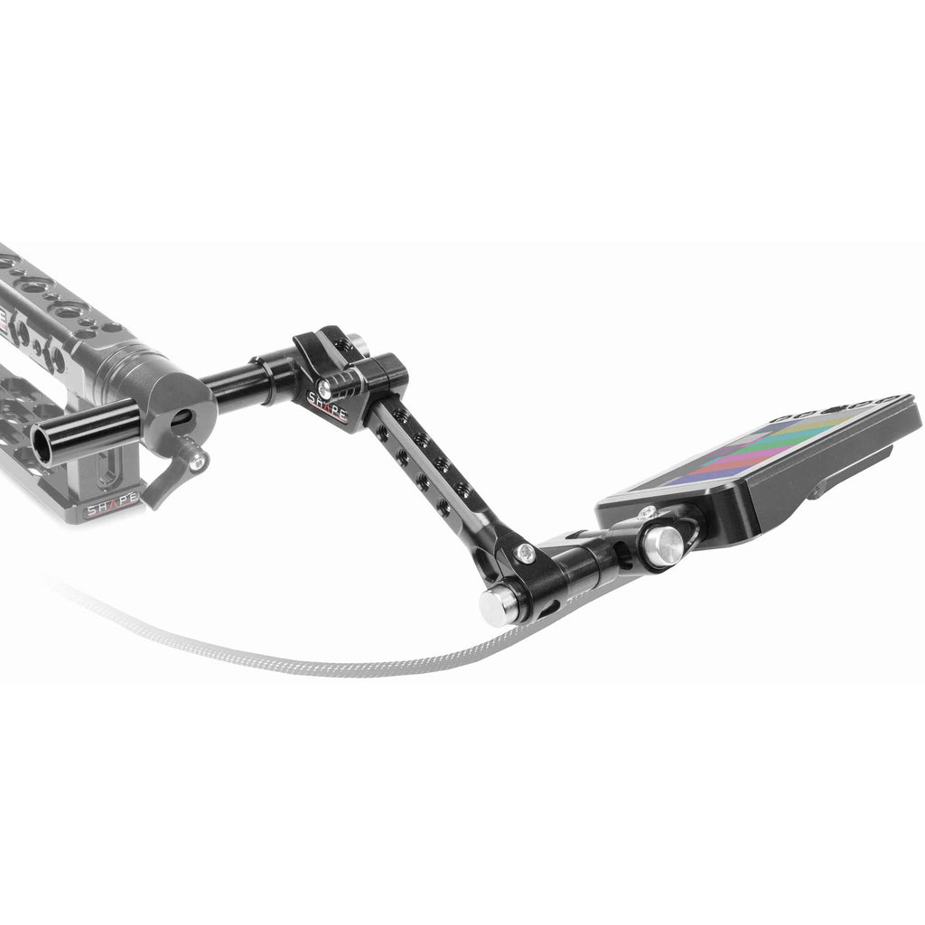 This Push-Button Viewfinder Mount from SHAPE is designed for use with the Canon EOS C400 camera. The unit is crafted with a 15mm rod with a 19mm push button and an L-bracket viewfinder clamp augmented with a ratchet knob. Two points of articulation provide quick vertical, horizontal, and transversal adjustment, with 360° rotation made possible by SHAPE's patented push-button technology. Made of CNC aluminum, the mount boasts sturdy construction and enhanced reliability.