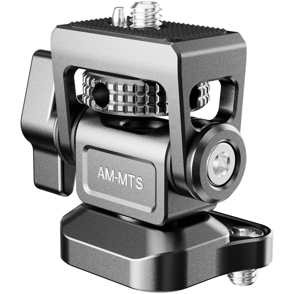 The compact and flexible device has a panning range of 360° and a 180° tilting range. It can hold a monitor weighing up to 15.4 lb in the upright position, which can be mounted quickly via the integrated 1/4"-20 screw with a retractable anti-twist pin. When tilted at 30°, the mount can support up to 6.6 lb, and at 45°, it can support up to 11 lb.