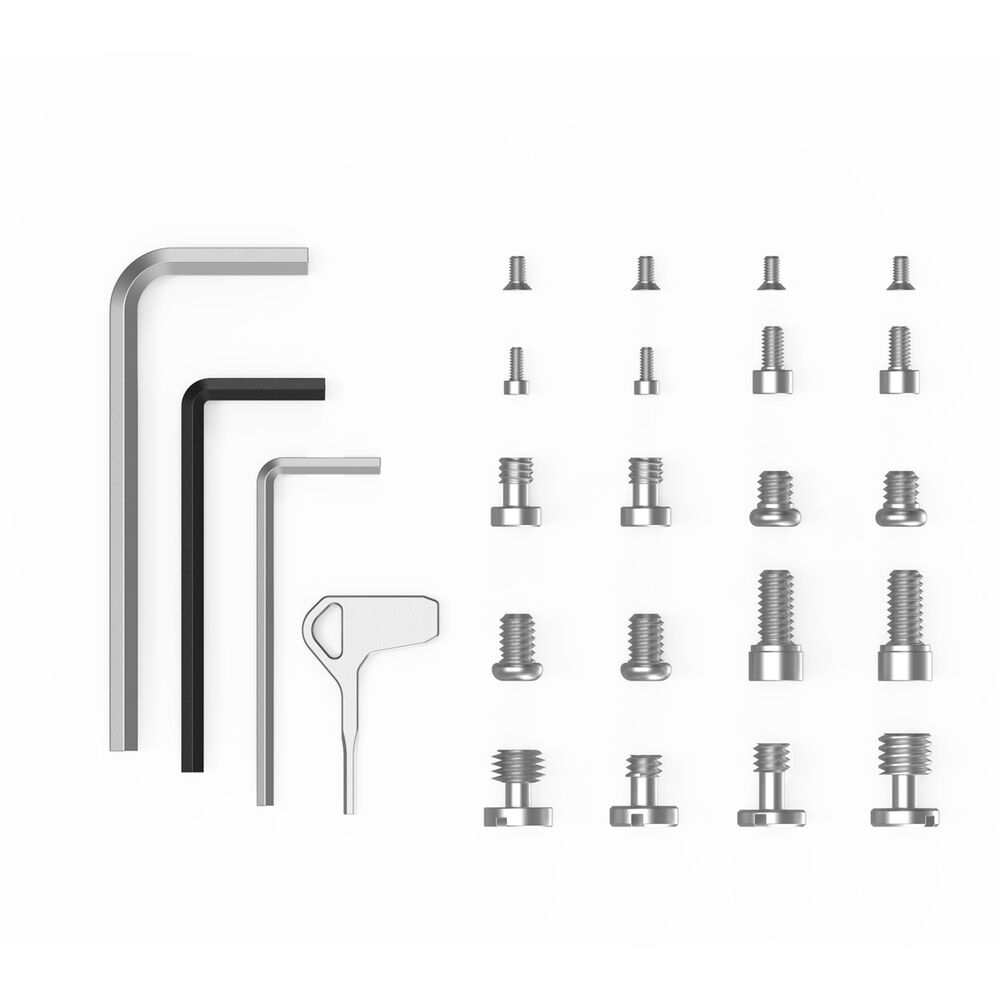 8 x 1/4"-20 Allen 2 x 3/8"-16 Flat Head 2 x M2.5 Allen 2 x M3 Trim Head 2 x M4 Allen 2 x M5 Allen |