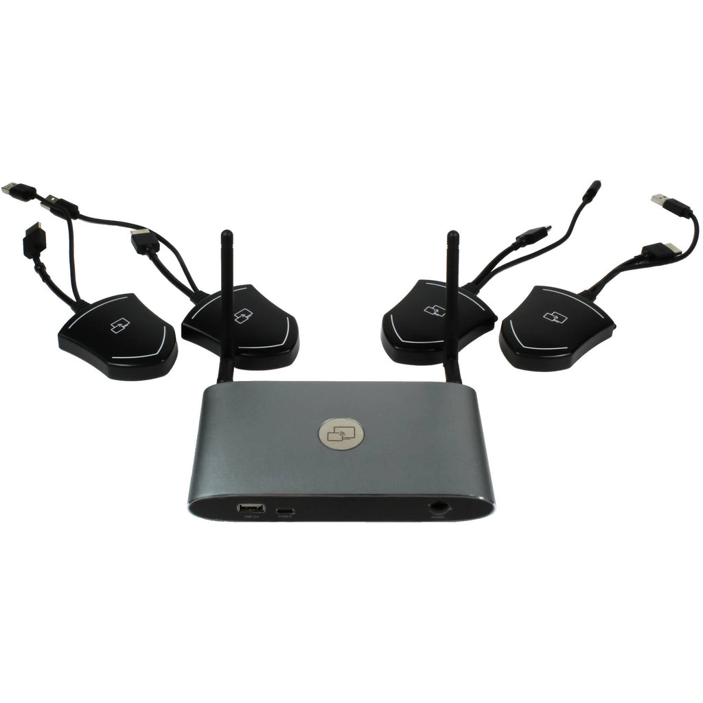 Experience the advanced functionality of a 4K multiview switcher with the convenience of a wireless presentation system using ShareView Wireless from TEKVOX. Boasting support for video resolutions up to 4K60 and three levels of wireless network security, the unit facilitates wireless content sharing and provides multiple users to share their screen by connecting via one of the USB-C or HDMI wireless transmitters without the need to download any additional software.