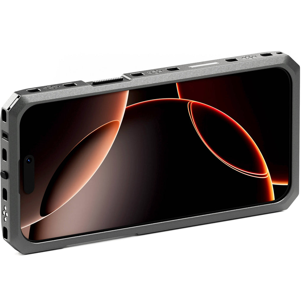 The Khronos Case for iPhone 16 Pro Max from Tilta is a custom-fit case that offers both protection and accessibility to a system of advanced filmmaking add-ons. It is designed with an anti-slip, quick release structure that installs in seconds without any tools. It features a capacitive touch button on the exterior that allows the full range of native camera controls found on a bare iPhone Pro Max.