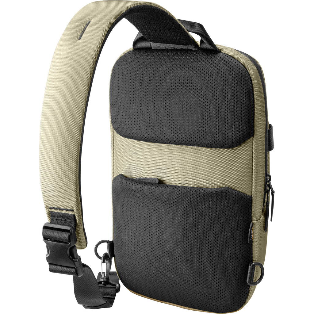 Keep your essentials protected during travel with the khaki, 5L Navigator-T24 Sling Bag from tomtoc. Constructed from tough recycled materials, it has multiple interior pockets and offers an easy way to organize what you need on your daily commute or a longer trip. Utilizing YKK zippers and a water-repellent surface, the Navigator easily withstands daily use and keeps your contents dry. The padded sleeve securely holds your 11" iPad Pro. Additional pockets keep small items organized. Carry options include a comfortable, padded shoulder strap as well as a top handle for easy grab-and-go movement.