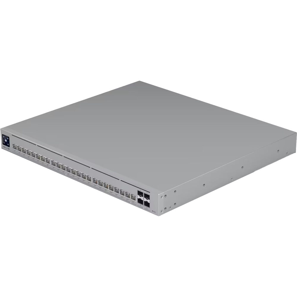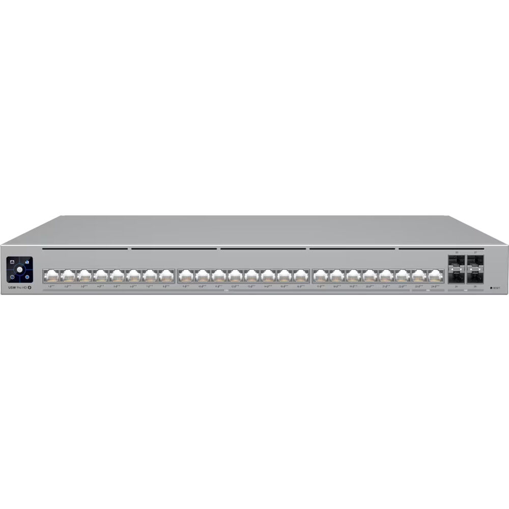 Expand your business's network with the Pro HD 24 PoE Managed Network Switch from Ubiquiti Networks to support IP cameras, access points, and other PoE compatible devices. This professional-grade managed switch includes twenty-two 2.5G RJ45 Ethernet ports alongside two 10G ports that can quickly transfer data with compatible devices. Each port provides up to 64W PoE++ to compatible devices with a total budget of 600W. Four SFP+ ports are also available for up to 10 Gb/s fiber uplinks.