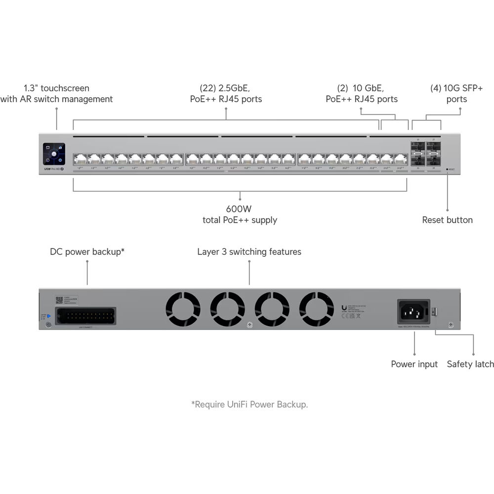 - Ubiquiti Networks Pro HD 24-Port 2.5G / 10G PoE++ Managed Network Switch