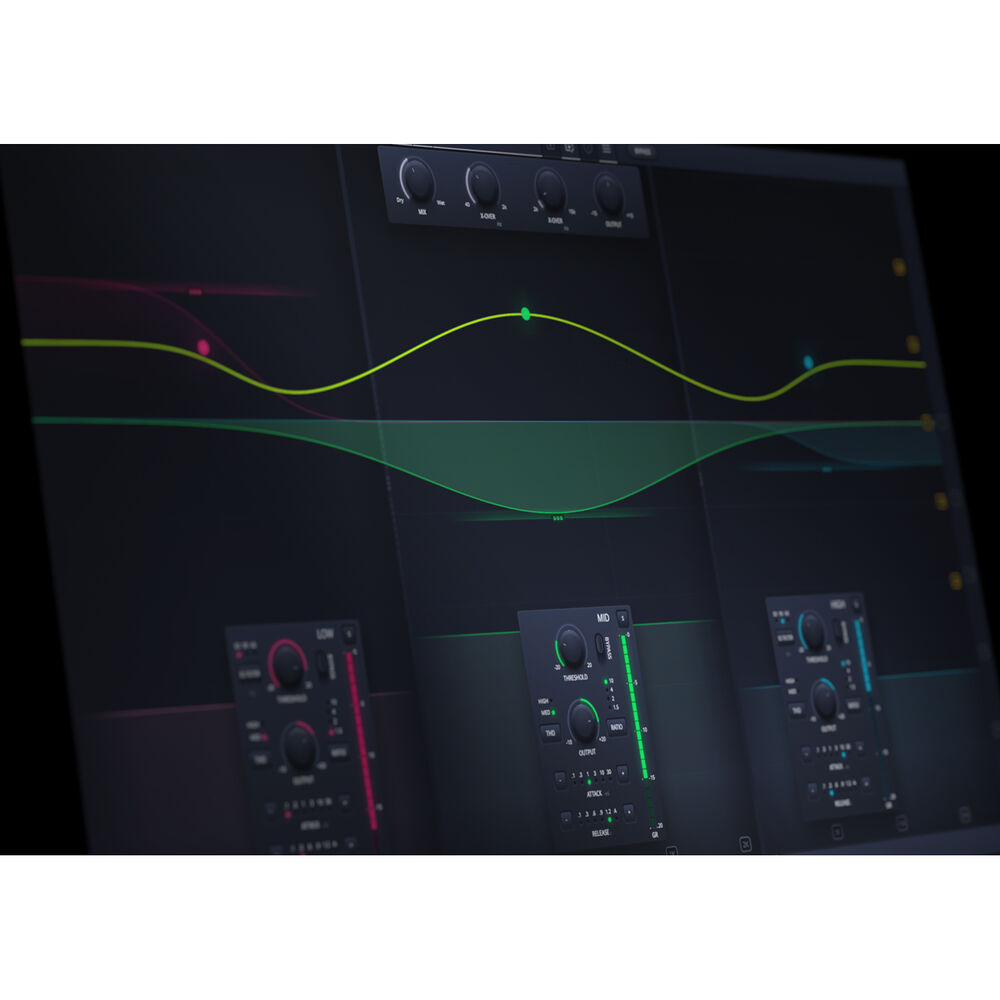 Crossover filters range from 40 Hz to 2 kHz, and 2 kHz to 15 kHz for precise multiband processing. Each band features tailored harmonic distortion, optimized for its frequency range