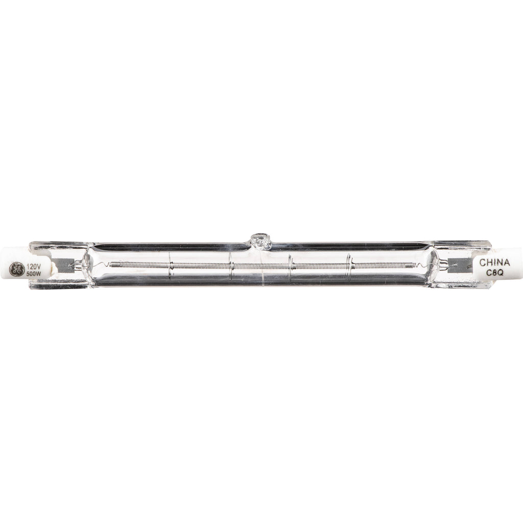 Generally used in stage, studio, and entertainment venues, the General Electric 500W, 120V Q500T3/CL Quartzline T2.5 Halogen Lamp has a color temperature of 3000K, a clear finish, a recessed single contact base, and a lamp life of 2000 hours.