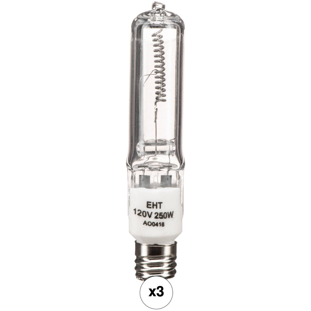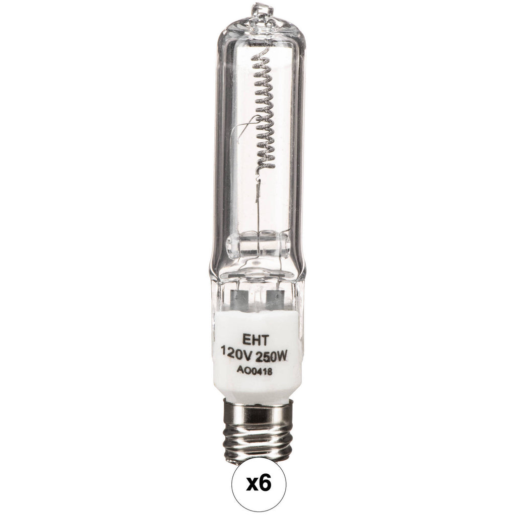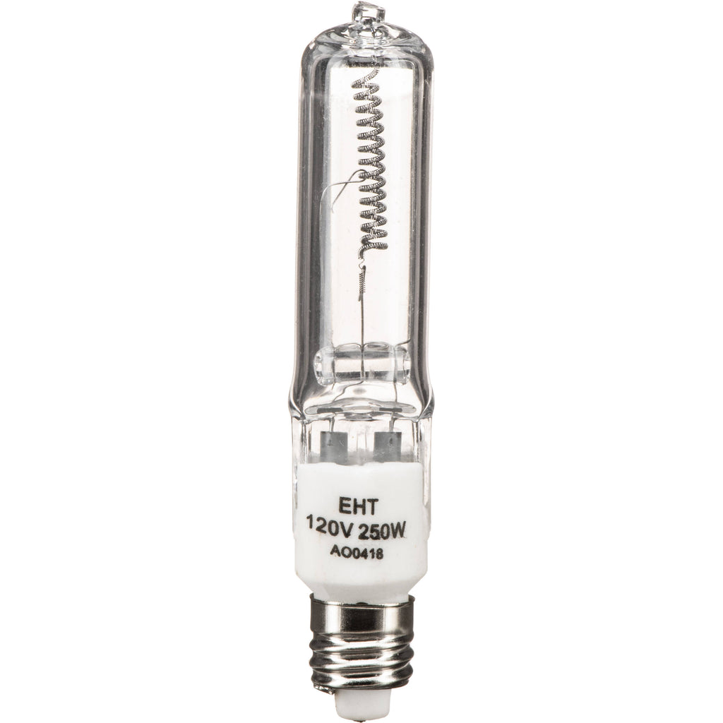 Tungsten Halogen LampMiniature Candelabra Screw (E11) B&H has put together this Impact EHT Lamp (250W, 120V) 6-Pack to provide image makers with the lamps for a lighting setup, replace exausted bulbs, or just the security of spares. The lamp is a quartz halogen bulb used in many lighting fixtures for photography stage, film, or video. It has a color temperature of 3000K and an average life of 2000 hours. It is suitable for fixtures with a Miniature Candelabra Screw (E11) base and a maximum rating of 250W.