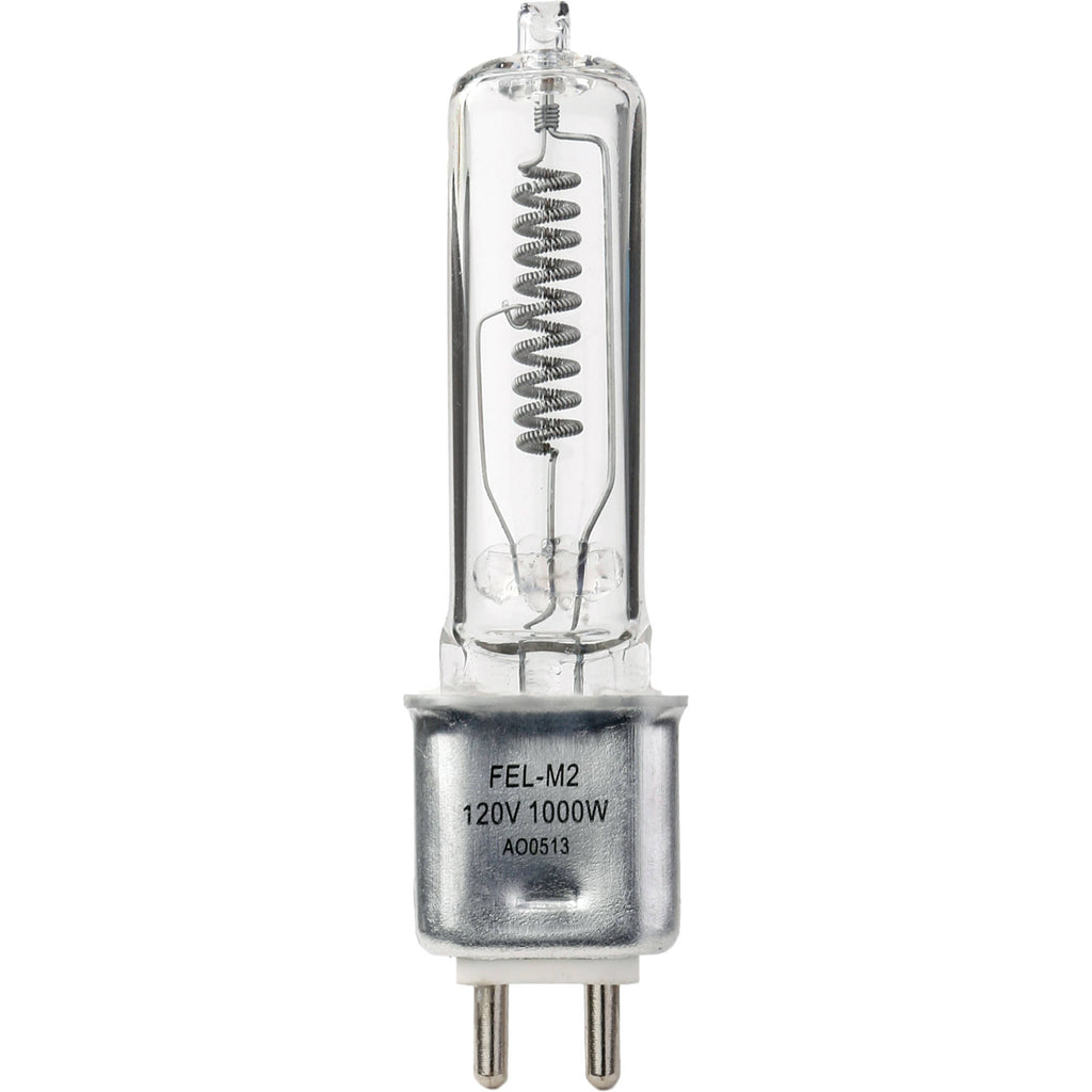 This Impact FEL-M2 Lamp is a tungsten halogen bulb with a G9.5 metal base. It is compatible with light fixtures that have at least a 1000W capacity. It has a color temperature of 3200K and an average life of 300 hours.