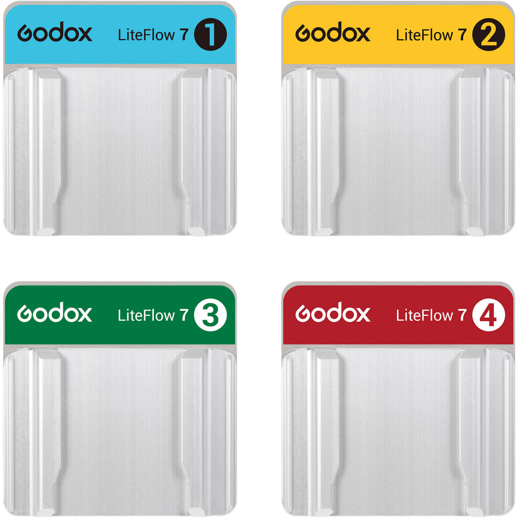 The KNOWLED LiteFlow 7 Reflector Kit from Godox's Cine Lighting Reflector system features four 3 x 3" LiteFlow 7 reflector boards with varying diffusion strengths, ranging from a hard to a soft strip ray of light. A soft carry case is included to accommodate the entire kit.