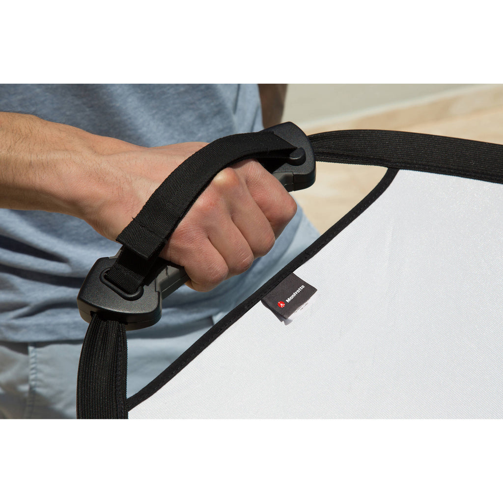 Enhance your subject's lighting environment with the Manfrotto Sunlite/Soft Silver TriGrip collapsible reflector. This model is a subtle mixture of silver and gold on one side, and crisp, clear light for optimum clarity on the other.