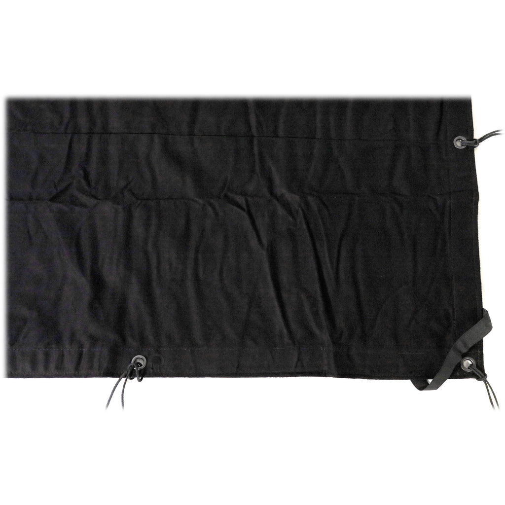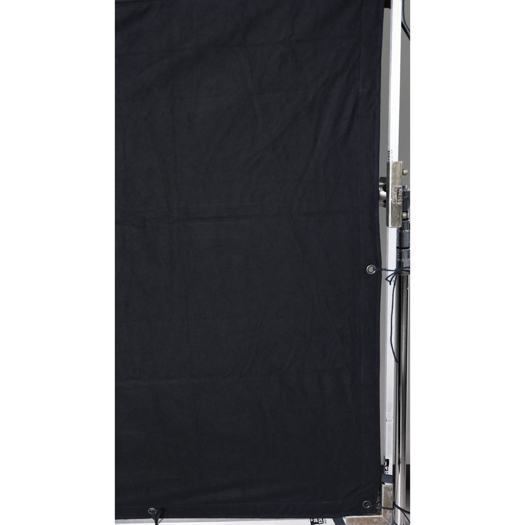 The 6 x 6' Duvetyne / Commando Cloth from The Rag Place is a heavy, opaque, 16 oz. flame-retardant masking fabric that can be used instead of more expensive velour. The fabric is finished with webbing and grommets, as well as elastic loops at the corners.