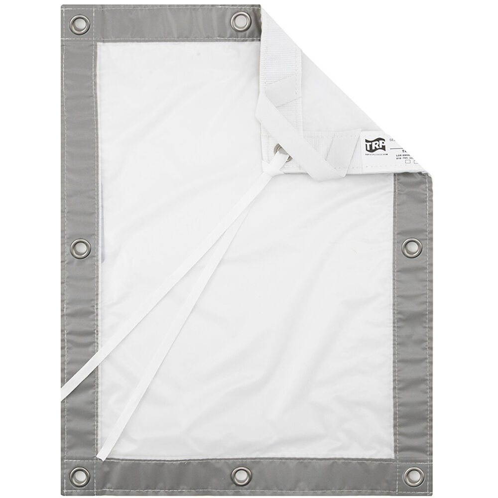 This 12 x 12', half-density Soft Frost Fabric is a vinyl diffusion scrim from TRP WORLDWIDE. It creates a unique light dispersion that minimizes light loss, making it suitable for working with LED lights.