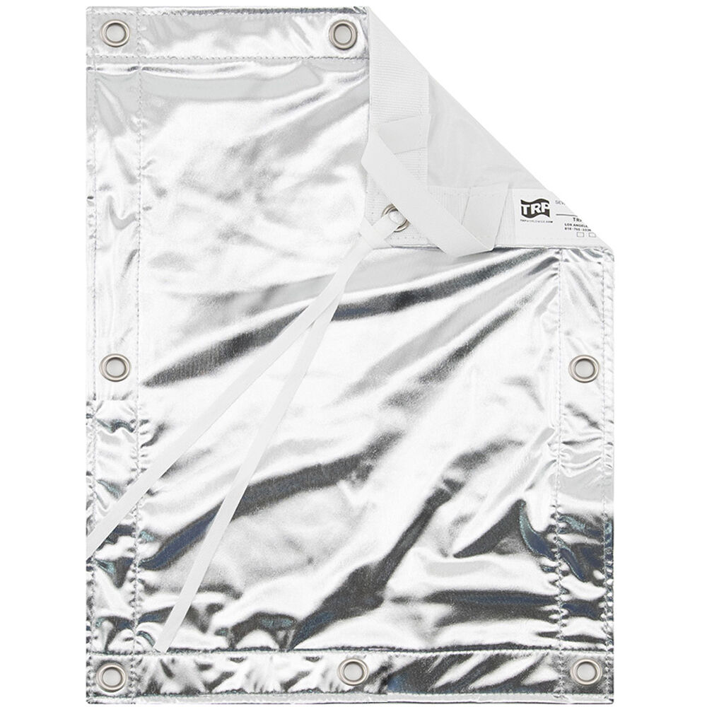 This foil-like reflective Silver Lamé Fabric from TRP WORLDWIDE measures 12 x 20' and provides a slightly diffused reflective bounce for your subjects. It has a silver-toned metallic surface that gives you a strong punch in full sunlight, while on overcast days it reflects the skylight by following the prevailing ambient conditions.