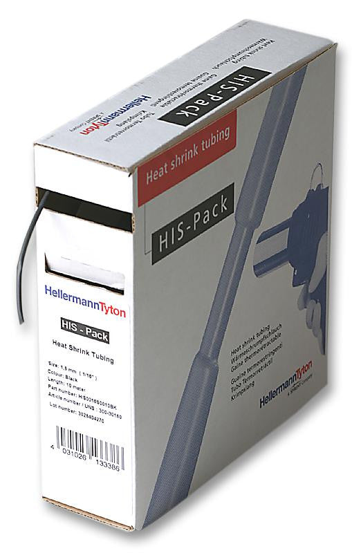 HELLERMANNTYTON 300-30160 Heat Shrink Tubing, HIS-PACK Dispenser, 1.6 mm, 0.062 ", 2:1, Black, 32.81 ft, 10 m