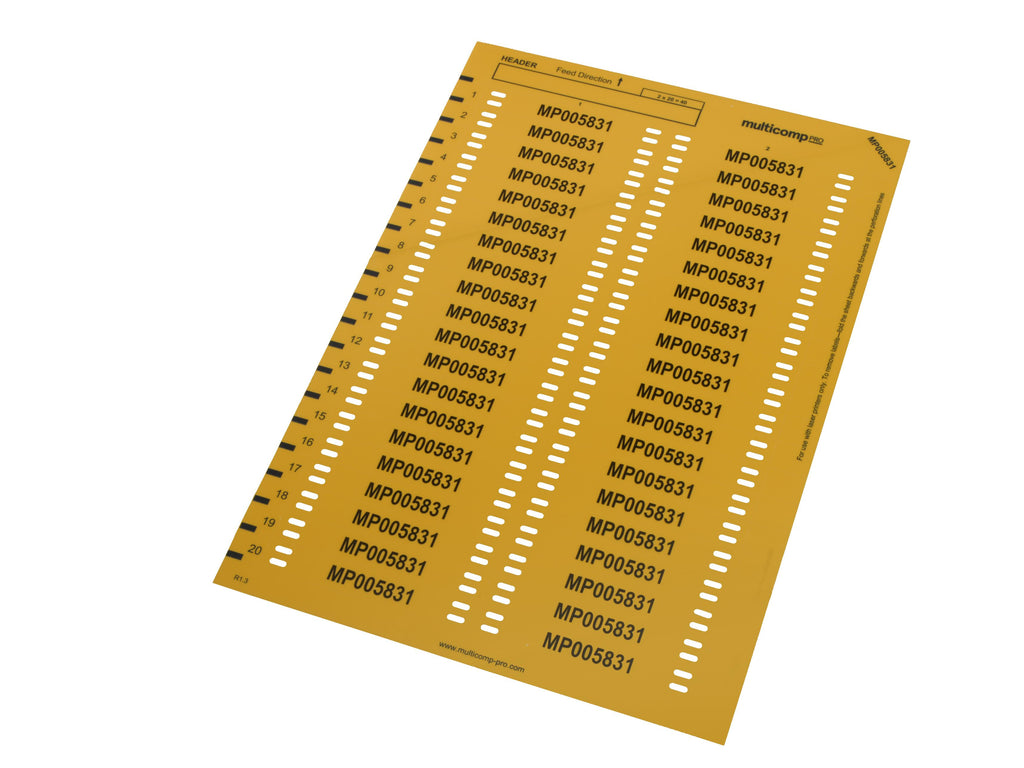 This is a MP005831 Wire Marker , Tie On Printable Plate, Yellow, 90mm x 13mm product from MULTICOMP PRO with the model number MP005831