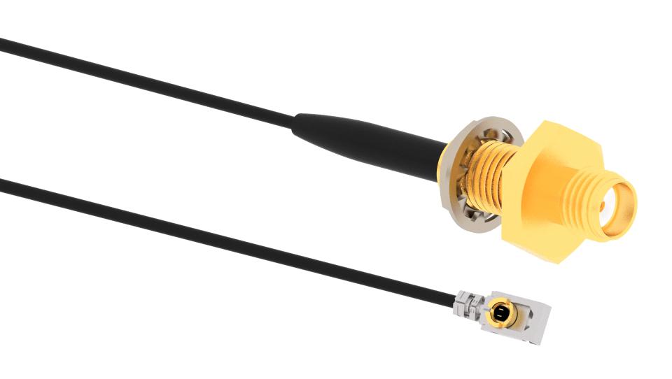 Connector to Connector: 90° MHF1-Type Plug to SMA Bulkhead Jack |