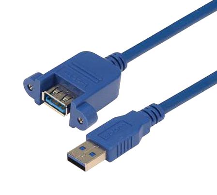 L-COM UPMAA-30-05M USB Cable, Type A Plug to Type A Receptacle, 500 mm, 19.7 ft, USB 3.0, Blue