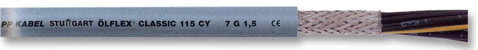 The 1136103 is a 3-core ÖLFLEX® CLASSIC 115 CY Screened Cable with smallest space requirement. The EMC-conform screened control cable is especially used in industrial and in EMC-critical environments. Due to the fact made without PVC inner sheath, visible results are smaller outer diameters and therefore reduced space requirement. It has fine wire strands of plain copper wires conductor, core insulation of special PVC P 8/1, covered with an insulating plastic foil, screening braid of tinned copper wire and a silver-grey special PVC based compound outer sheath. The high test voltage of 4000VAC (core/core) provides highest insulation safety of this 500V cable.