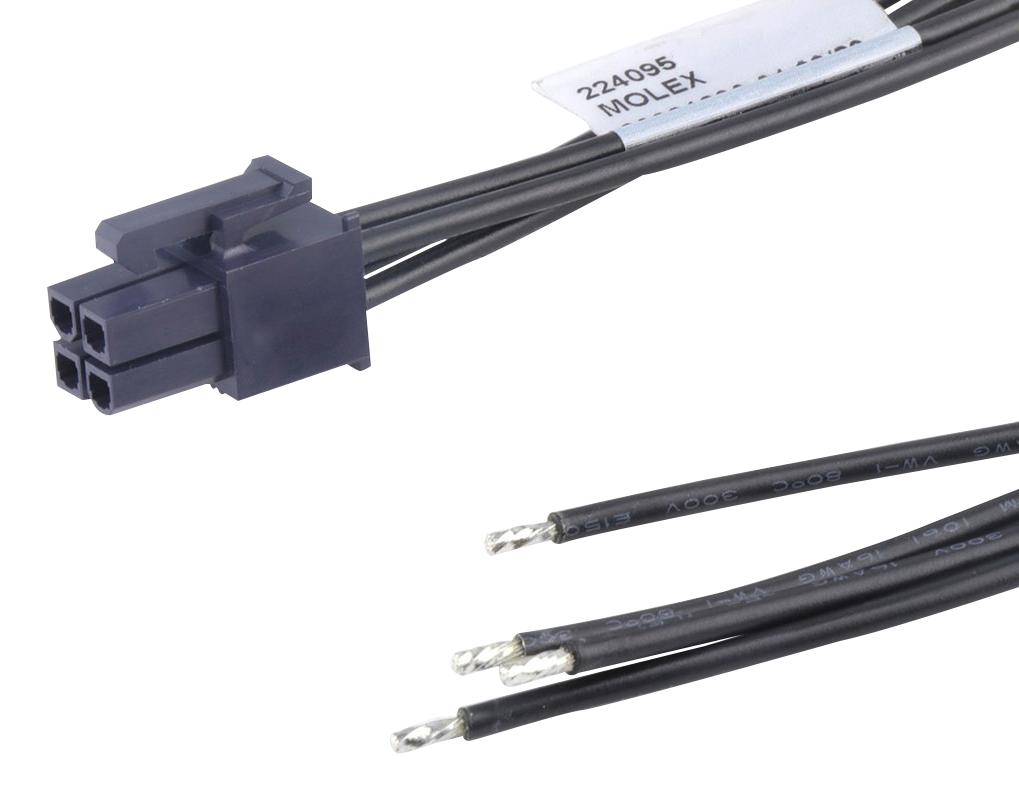 MOLEX 224095-1042 Cable Assembly, Mini-Fit Versa Receptacle to Free End, 4 Ways, 4.2 mm, 2 Row, 150 mm, 5.9 "