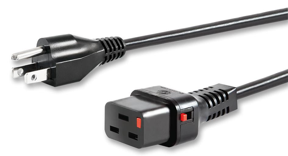 This is a Mains Power Cord, IEC 60320 C19, Mains Plug, USA, NEMA 5-15P, 6 ft, 1.83 m, Black product from SCHAFFNER with the model number IL19-US1-SJT-3150-183