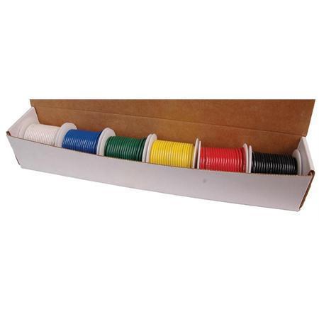 This is a HOOK-UP WIRE DISPENSER BOX WITH 6 X 25FT SPOOLS OF 20AWG WIRE 44AC9033 product from STELLAR LABS with the model number 24-14686