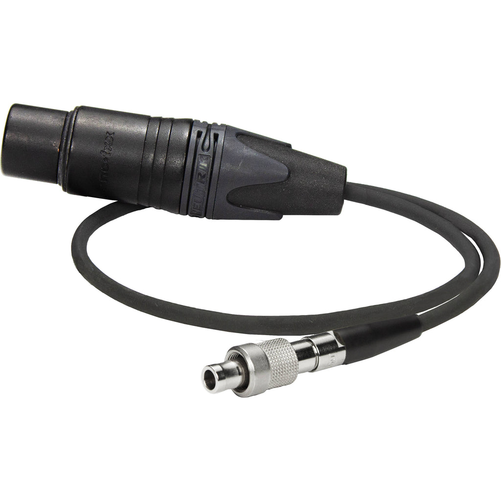 The Balanced 3-Pin XLR Female to 3-Pin LEMO Adapter Cable from Ambient Recording can be used with to feed a balanced signal to the input of a compatible component, such as a wireless audio transmitter.
