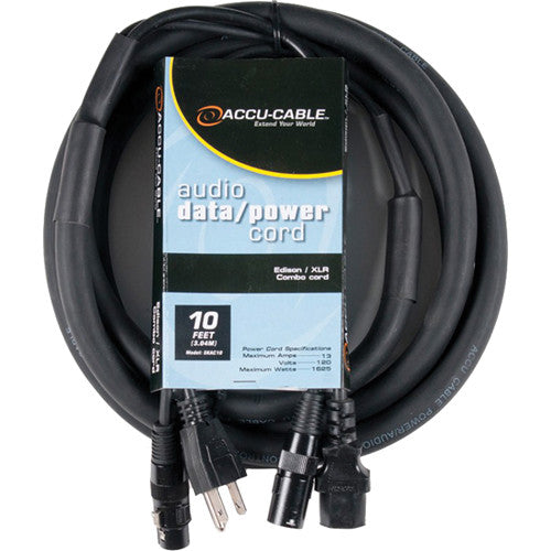 The 10' Edison Male to Female and XLR Male to Male Combo Cable from American DJ allows you to run your AC power and XLR signal at the same time. This cable uses 16 gauge wire and can accommodate up to 1625 watts.