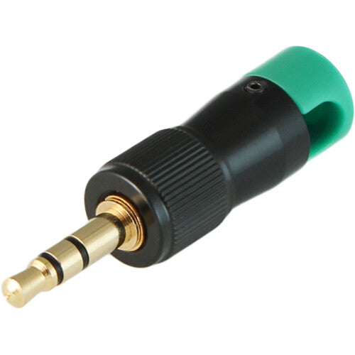 This screw-locking, gold-contacted, right-angled 3.5mm connector is color-coordinated, giving you a green cap to help distinguish connections in the field. It can accept cable diameters up to 5mm. Use this connector for DIY cable builds: it will work with popular unterminated cables such as Belden's 1804A, Mogami's W2901, W3031, W2697, and others.