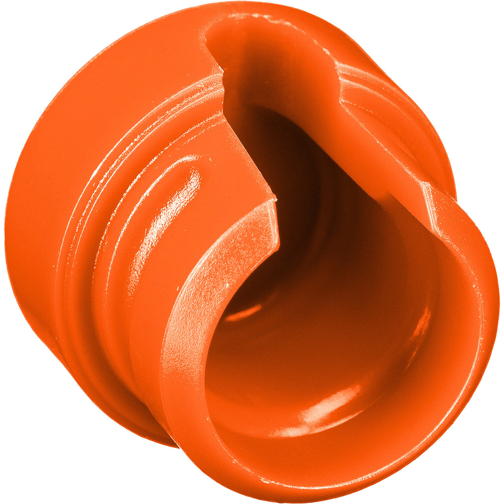 This large-sized orange Low-Profile Cap for Low-Profile XLR Connectors, Outlet for up to 6mm OD Cable from Cable Techniques is made of injection-molded, rock-solid, and durable ABS thermoplastic to ensure maximum impact resistance and toughness. Compatible with all Cable Techniques low-profile, right-angle XLR connectors.