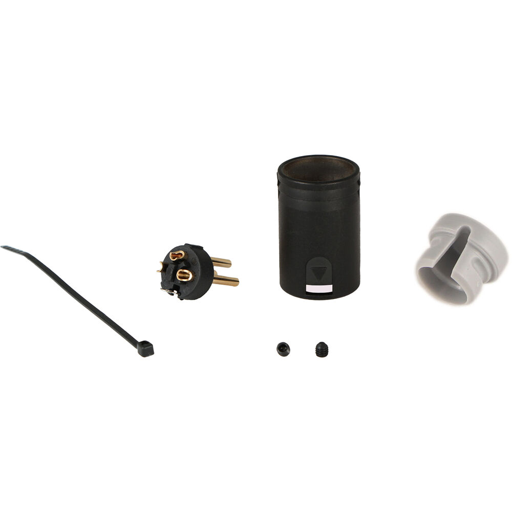 With its space-saving design, the Cable Techniques Low-Profile Right-Angle XLR 3-Pin Female Connector (Standard Outlet, B-Shell, Gray Cap) is ideal for use on portable recorders and field mixers in audio bags. Its standard cap has a cable outlet that accommodates cabling with diameters up to 3.4mm while offering 120 degrees of adjustment swing around the 6 o'clock and 12 o'clock positions, allowing perfect placement in an array of configurations. This variant features gold pins, a black shell, and a gray cap.