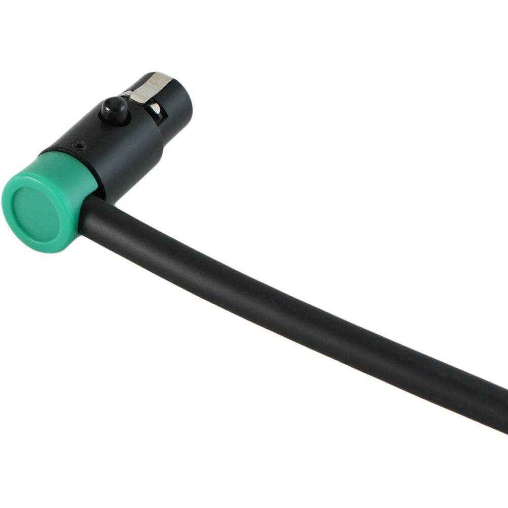 Featuring a distinguishing green cap, the Cable Techniques LPS Low-Profile Right Angle TA3F Connector is a female 3-pin mini XLR connector with a black shell and gold contacts. It has been constructed with an adjustable cable-exit, allowing you to use the connector in a variety of applications without straining cable.