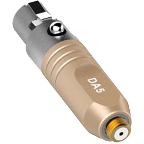 The beige Deity Microphones DA5B is a Microdot to TA5F adapter designed to interface a Microdot-equipped microphone with a wireless microphone transmitter outfitted with a TA5F jack. Simply connect the Microdot output of your microphone (available separately) to the DA5B's female Microdot input, then plug the adapter into your qualified transmitter (available separately). The DA5B is compatible with a variety of wireless microphone transmitters from Lectrosonics. Lightweight and compact, the convenient in-line design of the DA5B makes it well suited for use in video production, ENG, conferences, and houses of worship.