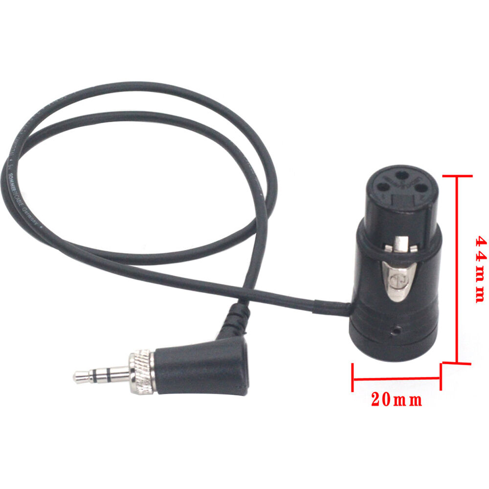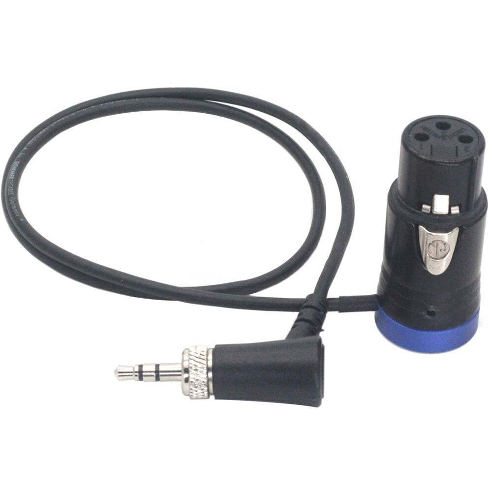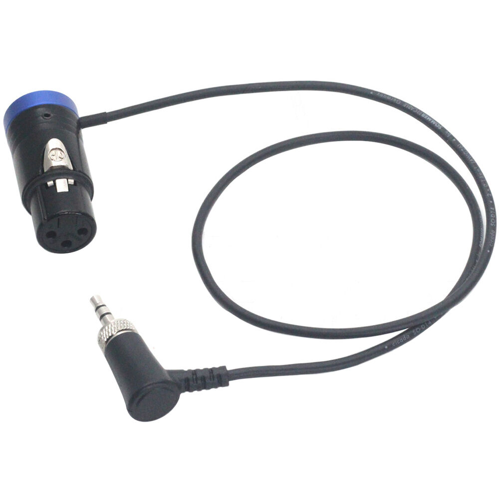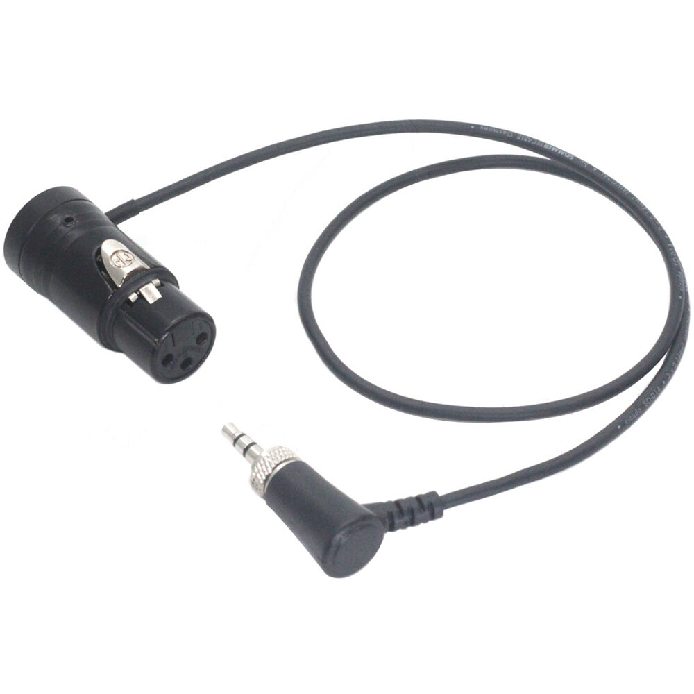 The 3.5mm Right-Angle TRS to Short XLR Female Audio Cable from DigitalFoto Solution Limited is a 1.6' long lockable audio cable. It features a 3.5mm right-angle male TRS connector on one end and a 3-pin XLR connector on the other end.