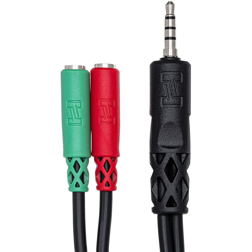 The Hosa Technology Headset and Mic Breakout Cable is designed to combine separate TRS outputs into a single TRRS connection. It is ideal for combining separate mic and headphone outputs into one input for all-in-one headsets.