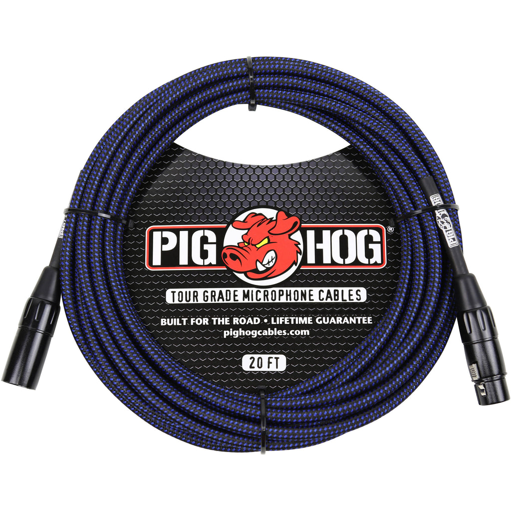 Pig Hog Vintage Series Woven XLR Microphone Cable (Black & Blue, 20')
