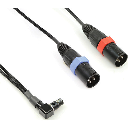 The Balanced Stereo Breakout Cable from Remote Audio features a TA5F right angle TA connector that can adjust to any angle on one end and two 3-pin XLR male connectors on the other. It can be used as an output from a mixer or a recorder and connected to the 3-pin XLR input on cameras for audio applications such as video shoots, field productions, broadcast TV, and more. The cable is built with Neutrik, Mogami and Remote Audio brand components and includes a flexible braided sleeving for added durability. In addition, the cable length is 18".