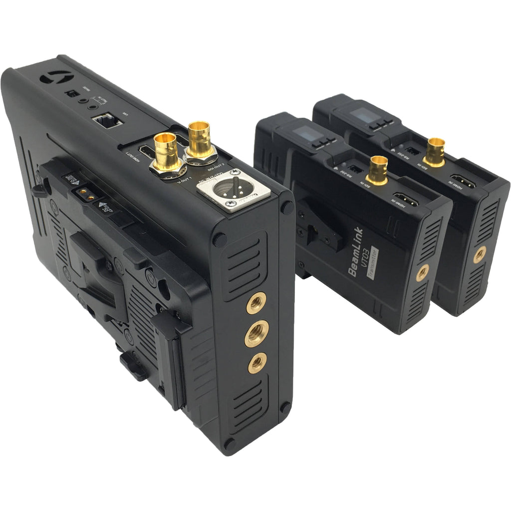 - Transmitters with Sony battery dock on the back and V-mount on the front