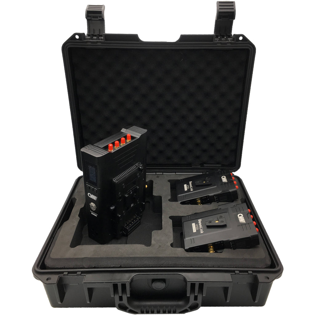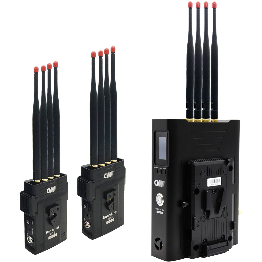 The BeamLink-Duo 2-Channel Full HD Video Wireless Transmission System from Crystal Video Technology includes two transmitters and one receiver. This system allows you to send two 3G-SDI and HDMI signals to the receiver simultaneously over a range up to 2295'. The receiver features two SDI and two HDMI outputs. Signals up to 1080p60 can be transmitted with a latency of 70 ms over one RF channel on the 5.1 to 5.8 GHz frequency. The system also offers tally input and output, and all three units confirm transmission status via OLED displays.