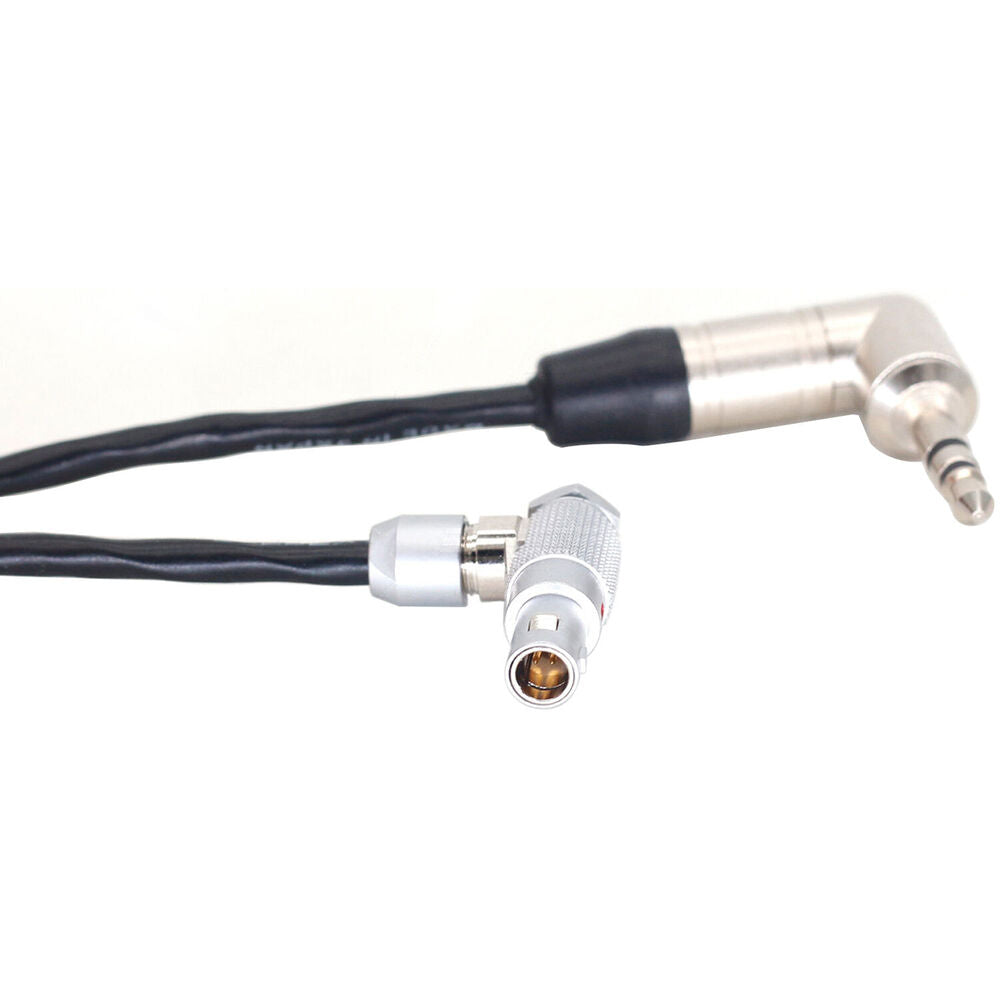 The 4-Pin LEMO to 3.5mm Timecode Synchronization Cable from DigitalFoto Solution Limited is designed to work with select RED cameras. The 11.8" long cable features a right-angle 4-pin LEMO connector on one end and a right-angle 3.5mm connector on the other.