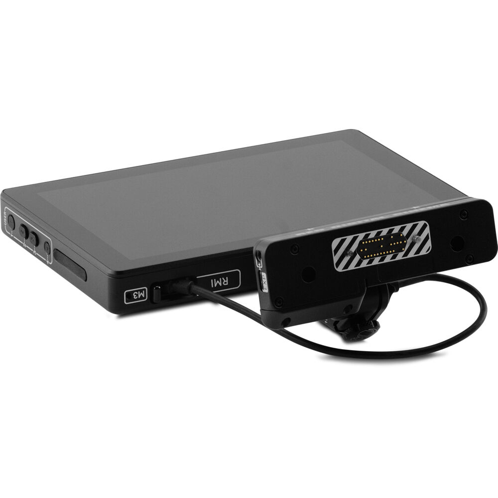This monitor attaches directly to your DSMC3 BRAIN using its Pogo mount, which provides video, data, and power to the monitor from the camera. If you need to use the Pogo mount for another accessory, the monitor also features a locking USB-C connector that alternately allows you to pass video, data, and power to the camera. Note that the DSMC3 Touch monitor is not compatible with DSMC, DSMC2, RED RANGER, or KOMODO camera systems.