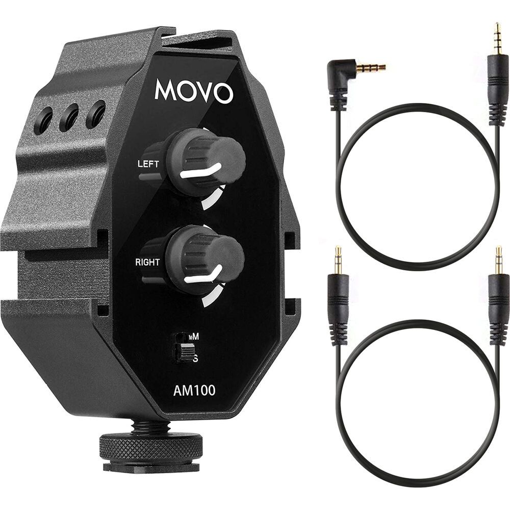 - Movo Photo AM100 2-Channel TRS 3.5mm Microphone Audio Mixer