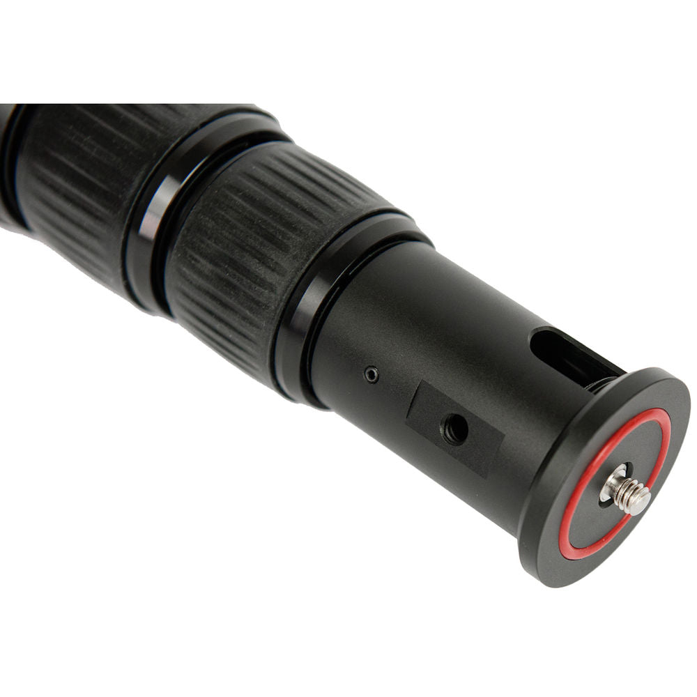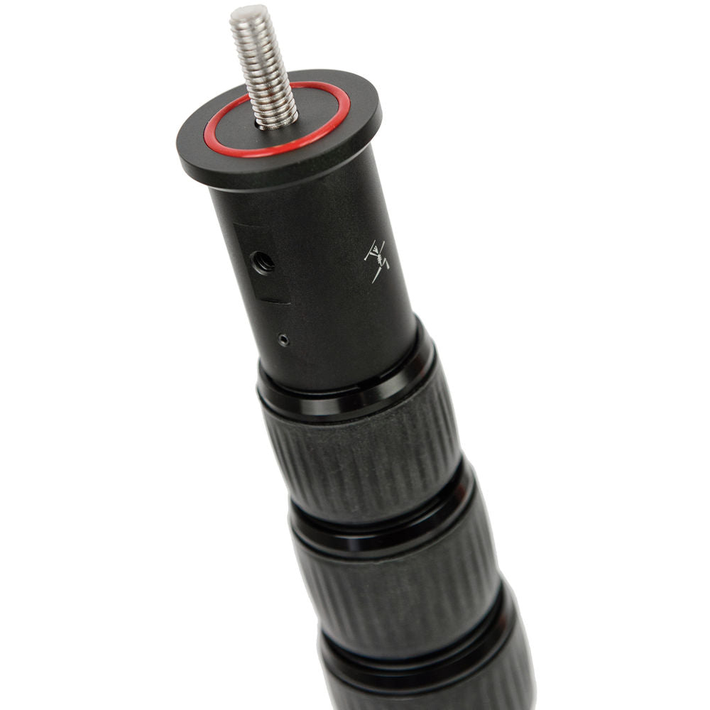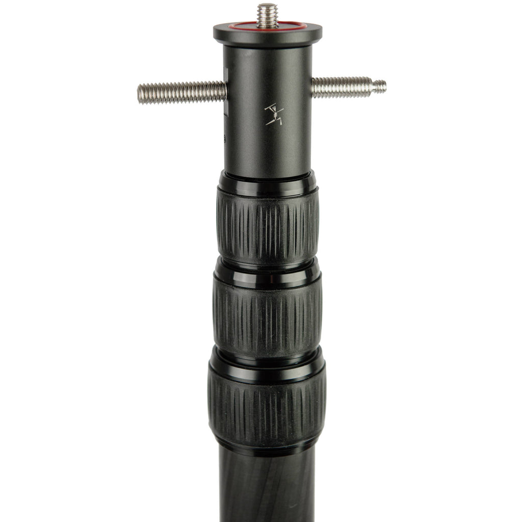 The Bushman Panoramic CORELITE VR is a multifunction, extendable four-section carbon fiber pole that extends from 16.93 to 35.43" in length. It can serve as a monopod, or as the center column for an AMARULA VR tripod. It features a removable top plate and removable base that allows you to easily change the configuration or even run cables through the pole. The top plate features a reversible threaded stud that is 1/4"-20 on one side and 3/8"-16 on the other.