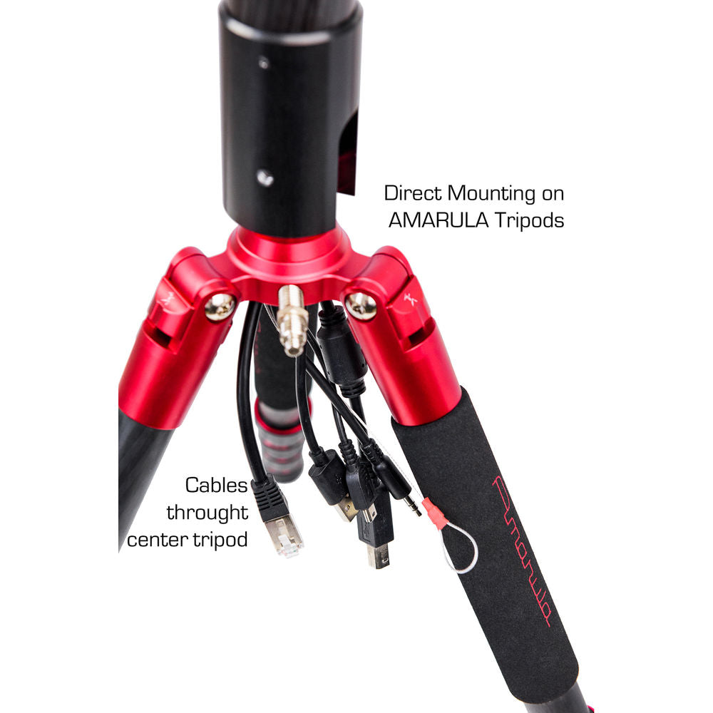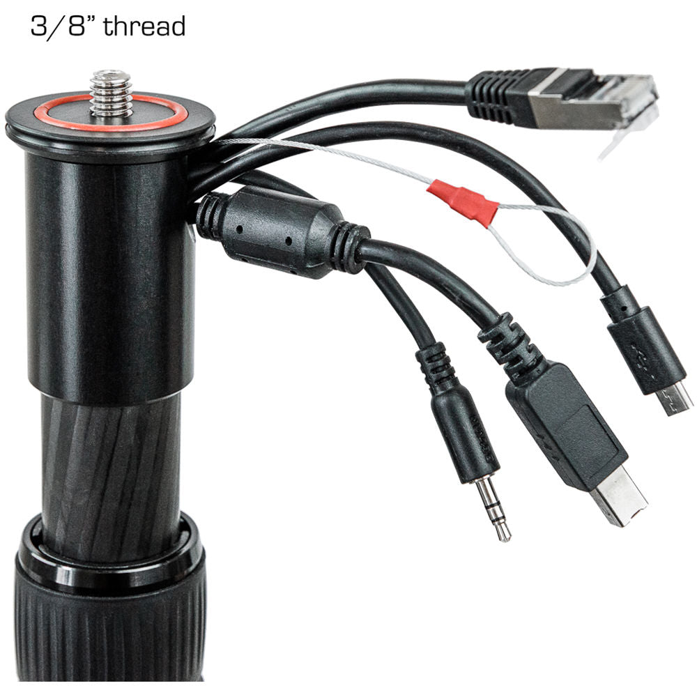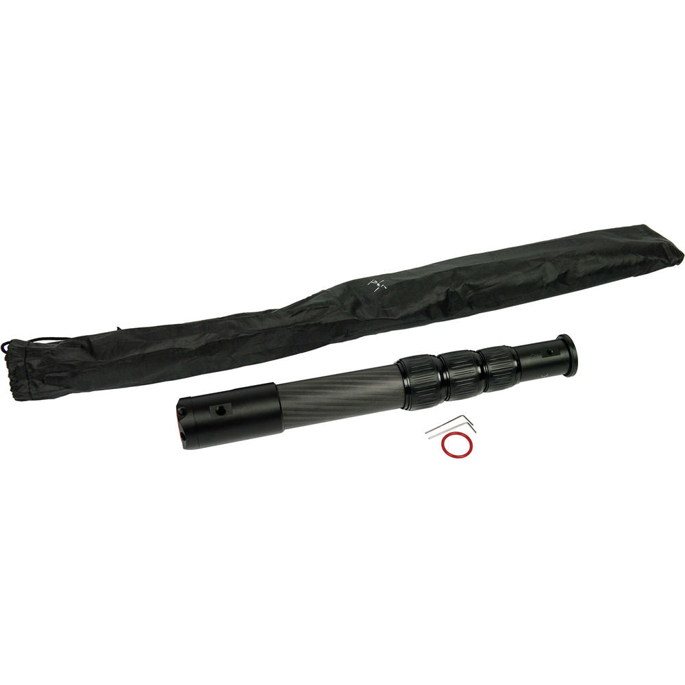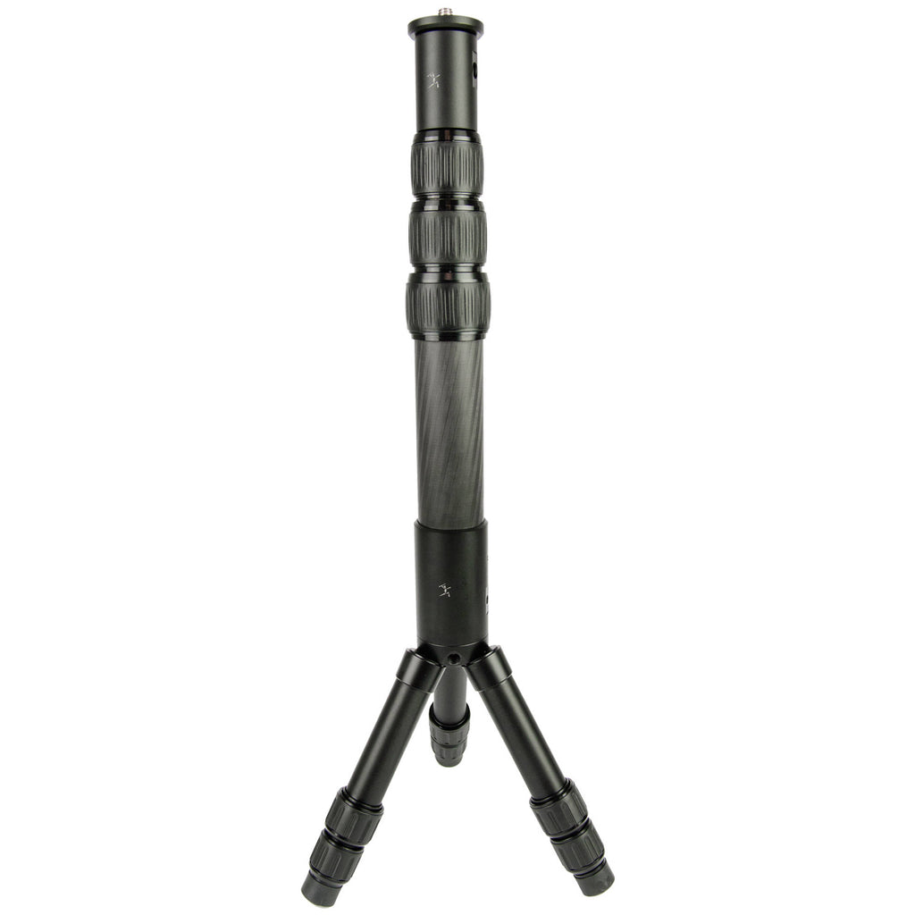 The Bushman Panoramic CORELITE VR is a multifunction, extendable four-section carbon fiber pole that extends from 16.93 to 35.43" in length. It can serve as a monopod, or as the center column for an AMARULA VR tripod. It features a removable top plate and removable base that allows you to easily change the configuration or even run cables through the pole. The top plate features a reversible threaded stud that is 1/4"-20 on one side and 3/8"-16 on the other.