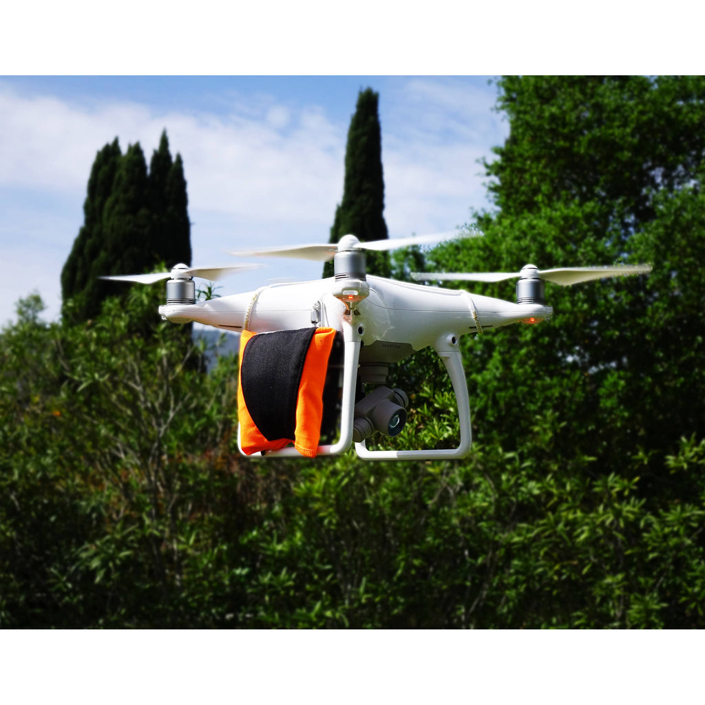 Protect your investment with the orange and black Parachute with Sentinel Automatic Trigger for Phantom 4 from Fruity Chutes. This lightweight parachute system is engineered to allow for automatic deployment, providing your Phantom 4 with a nice gentle landing. Automatic deployment is handled via the Sentinel triggering system, which can detect a variety of drone failures in as little as 0.5 seconds. Parachutes are ejected via a high-energy torsion spring so you can take the system with you to any location. You can even be conveniently folded and packed by the user for multiple uses without requiring shipment to the manufacturer.