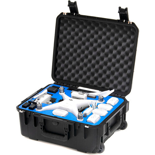 Rugged and compact for airline carry-on transport, the Go Professional Cases Hard-Shell Compact Wheeled V2 Case for DJI Phantom 4 is designed to safely protect and transport your DJI Phantom 4 (standard, Advanced, Pro, Pro V2, or Pro Obsidian), six batteries, an iPad, a CrystalSky with batteries, and various critical accessories, making it ideal for pros who can't take time to charge batteries. The industrial-strength pull handle and in-line wheels allow simple, easy transport with a single hand.