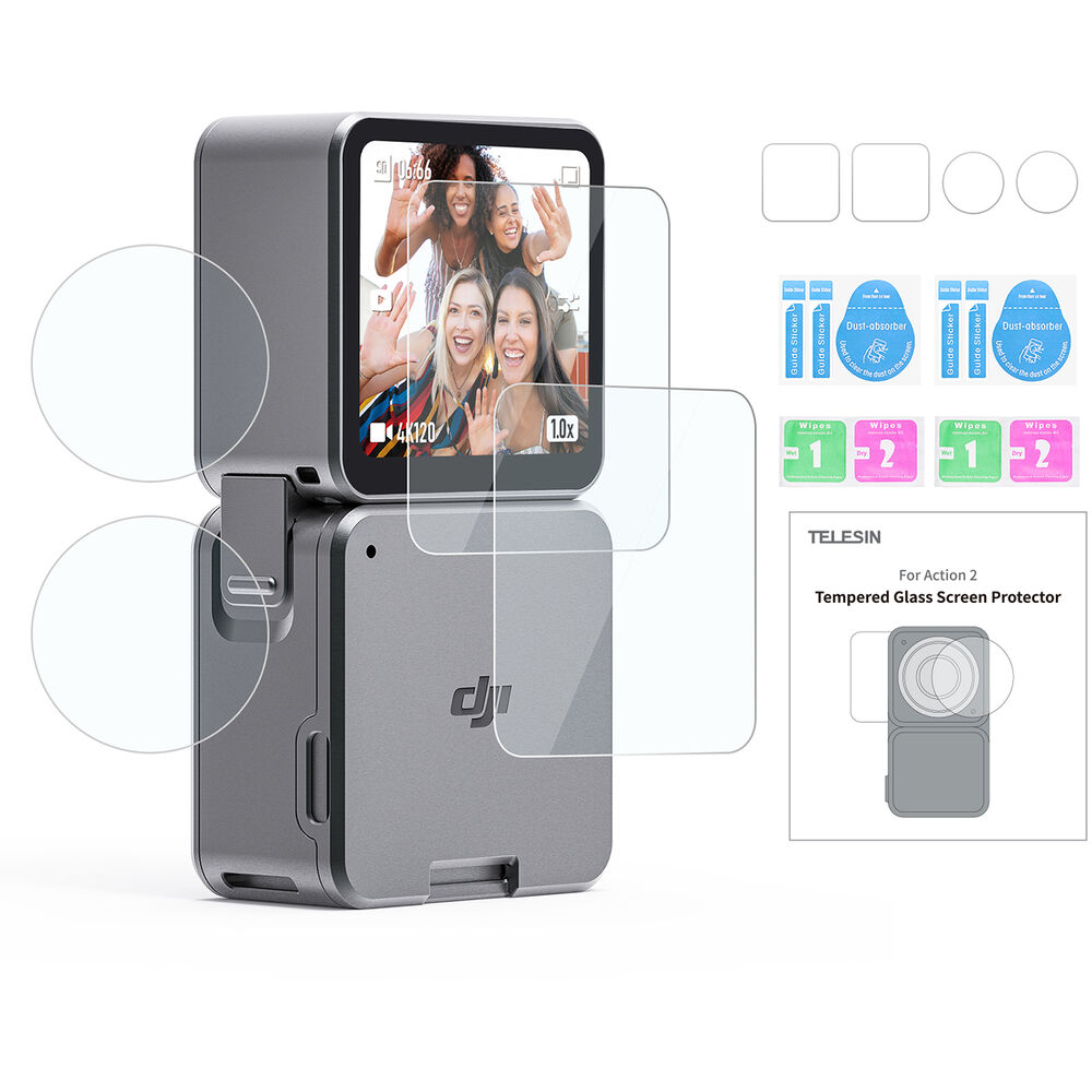 - TELESIN Power Combo Protector Set for DJI Action 2 (2 x Lens Films, 2 x Screen Films)