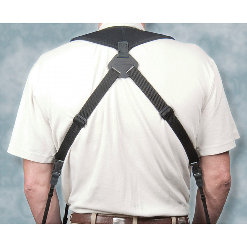 Comfortably carry two cameras or binoculars, keeping them secure and quickly accessible in the black Extra Long Dual Harness Uni-Loop Version from Op/Tech USA . The Harness is made in the USA and capable of holding select lens pouches or accessories. The U-shaped neoprene neck pad evenly distributes the weight of your gear while reducing shock. An adjustable back section allows you to fit the harness comfortably, and the removable sternum strap controls the width of the harness, to evenly balance gear at the sides and eliminate interference between two cameras.