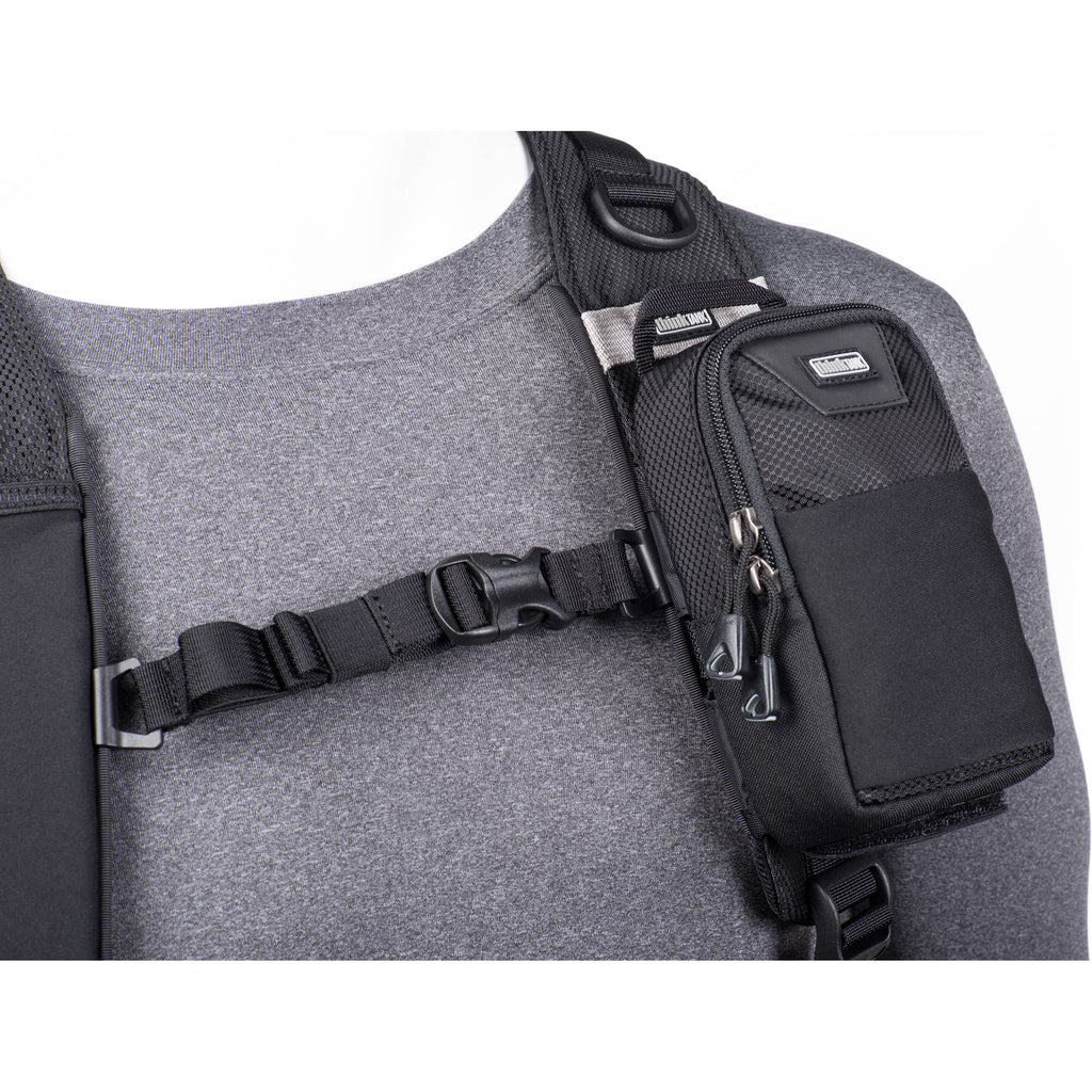 For mounting accessories, the Pixel counts with dual D-rings at the top for attaching a hook and a small stretch pocket for everyday items. An attachment point is available for the optional Little Stuff It! pouch, and the harness is also compatible with the Camera Support V2.0 straps. Finally, a quick release buckle on the front allows you to easily remove the harness after you are done shooting.